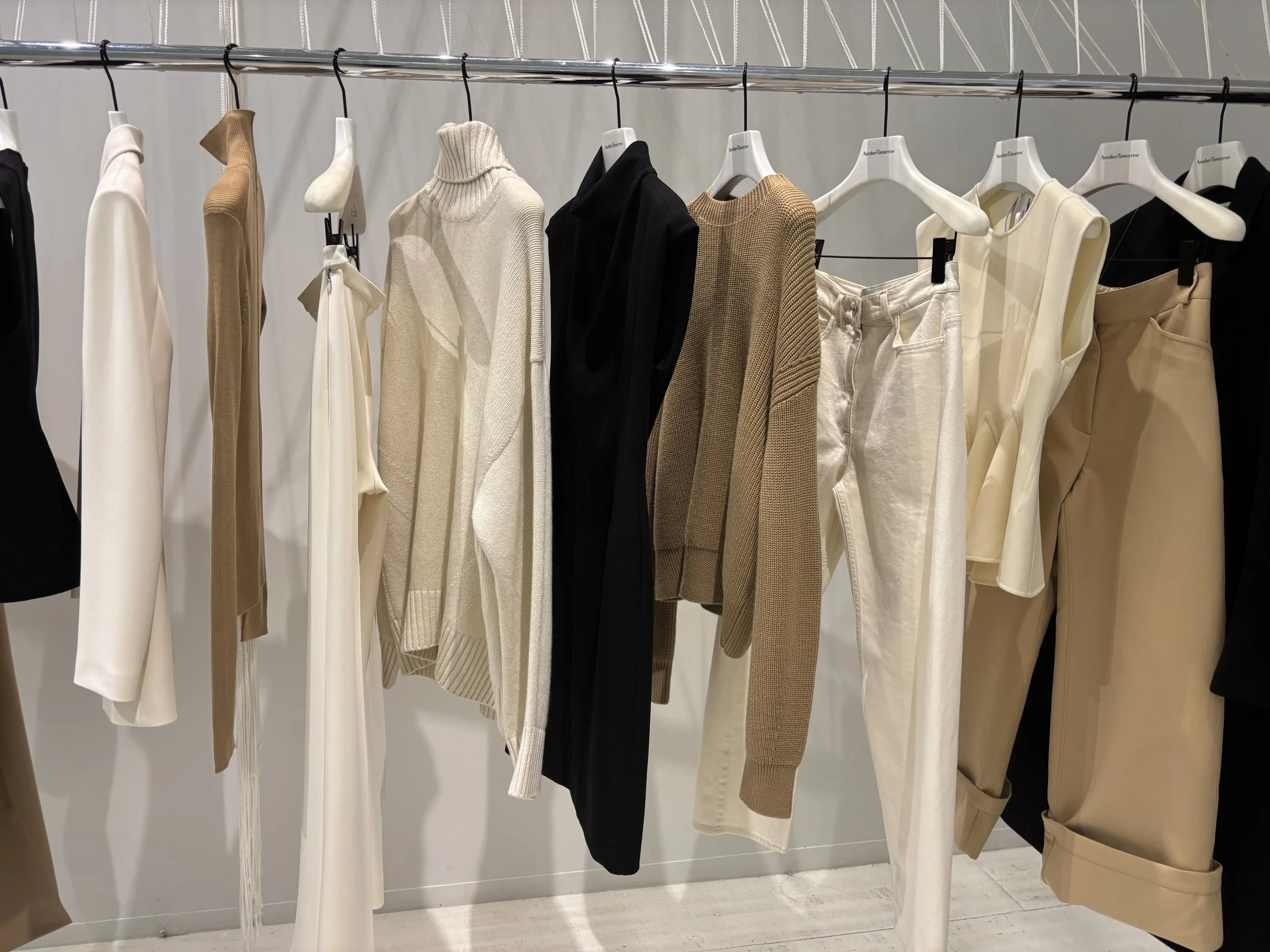 2020年1月にニューヨークで生まれたANOTHER TOMORROW。サステナブルブランドとして名を馳せているブランド。2026年春の新作のお披露目。ベーシックなのにトレンドをしっかりと取り入れられているアイテムばかり。今春の気分のピンクアイテムもずらりと並んでいた。